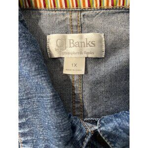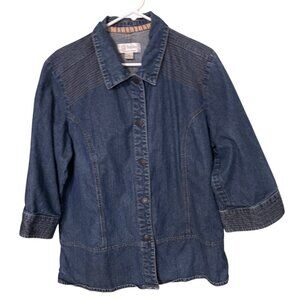 Womens Denim Jacket 1X Button-FrontCJ Banks Cotton 3/4 Sleeves Lightw