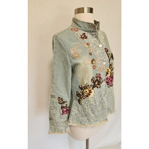 Womens Denim Jean Jacket Y2K Vintage Lace & Flower Patches