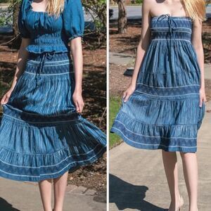 Women’s Denim Maxi Skirt or Strapless Dress, Girly Coquette Boho Extra Large