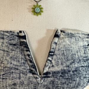 This is a pre-owned strapless faded denim mini dress in a size small. It is super sexy, watch out?