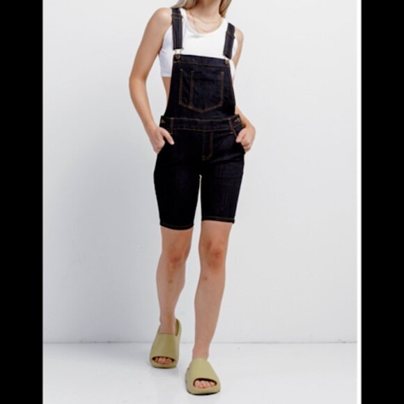 Women's Denim Shortalls Dark Denim Adjustable Straps Overall Jean Shorts Y2k