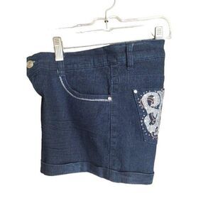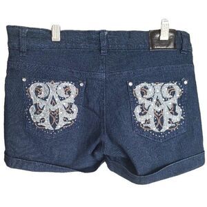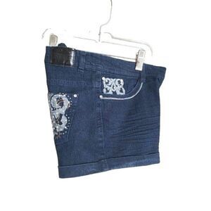 Women's Jean Shorts 7 Brookland Girl Dark Denim Embellished Stretch Shorts NEW