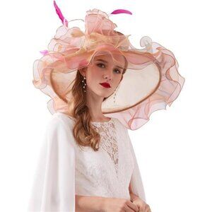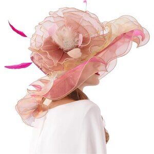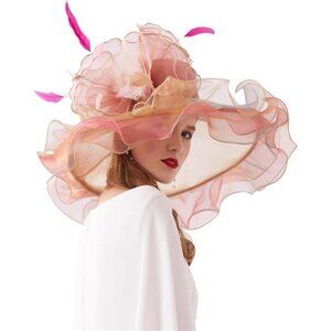 Design——High quality tea party organza sun hat adopt a lightweight and elegant double layered material design,Ultra lightweight materials won't make you feel heavy at church weddings,your skin from the ultraviolet from sunshine while going out.sweatband drawstring adjuster inside.Fascinator hat Circumference: 21.6-22.8inch / 55cm-58cm.