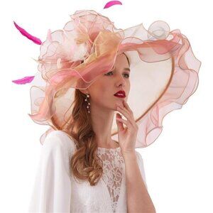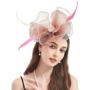 Women's Derby Church Hat Tea Party Fascinators Khaki Pink