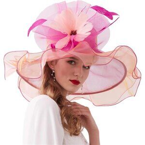 Occasion——Elegant women sun hat for church /floral organza hat/cocktail party hat/ wedding hat/race day events hat/ tea party hat/ outing travel hat/formal occassion hat/outdoor summer hat/ beach travel hat.Believe me, you can simply standing out above the crowd.