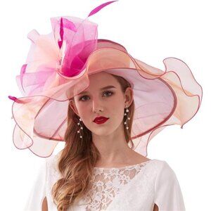 Design——High quality tea party organza sun hat adopt a lightweight and elegant double layered material design,Ultra lightweight materials won't make you feel heavy at church weddings,your skin from the ultraviolet from sunshine while going out.sweatband drawstring adjuster inside.Fascinator hat Circumference: 21.6-22.8inch / 55cm-58cm.