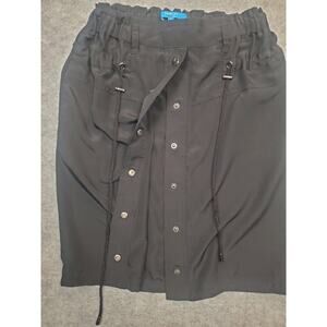 Women's Derek Lam for Design Nation size medium black drawstring midi utility skirt. Pull on, elastic and drawstring at waist, snaps down the front, belt loops, slightly sheer.