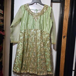 *emerald gold stone work and embroidered all over Front & Back