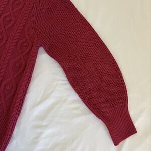 This women's Design 365 pink crew neck puff sleeve sweater in size large is a stylish and versatile piece perfect for both parties and casual wear. Made from tight-knit acrylic material, this sweater features a solid pink color and long puff sleeves, giving it a unique and colorful look. With a regular fit and pullover style, this sweater is easy to care for with machine washable fabric. The chest is 40 inches and the length is 24 inches. Perfect for the modern woman looking for a chic and comfortable garment to add to her collection.