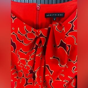 Women’s Designer Abbey Glass Red Poly Blend Geometric Bow MIDI Dress Size Small