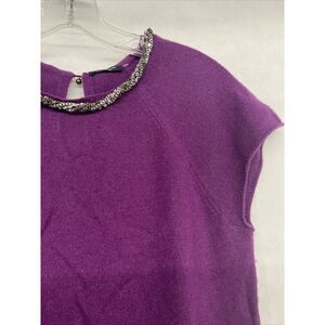 Womens Designer Magaschoni Purple Short sleeve cashmere sweater metal rhinestone.