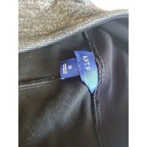 Stylish women's leggings from Apt. 9. These metallic silver pull-on leggings in size M are perfect for any occasion, be it a casual day out, a party, or even for travel. The mid-rise leggings feature a solid pattern and a versatile style that will make you stand out. Made from high-quality fabric, these leggings are perfect for any season, be it winter, summer, fall, or spring. The dark wash adds to the appeal of the leggings, while the 29-inch inseam ensures a comfortable fit. These leggings are sure to add a touch of American-themed elegance to your wardrobe and become a must-have.