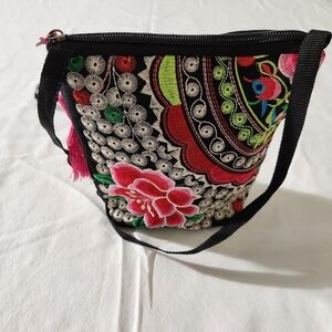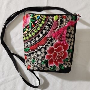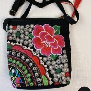Women's Detail Floral Embroidered Black Small Tassel Accent Zip Closure Crossbody Shoulder Bag Lightweight This stylish black Crossbody bag features vibrant floral embroidery, perfect for adding a pop of color to any outfit. Ideal for everyday use, it combines fashion with functionality. Boho Hippie Casual Party NWOT Reasonable Offers Welcome