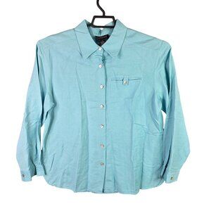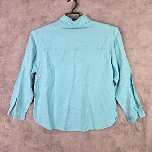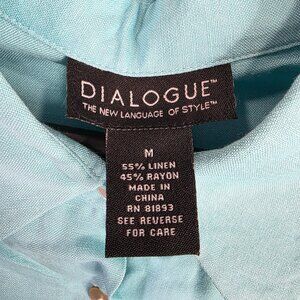 Womens Dialogue Blue Linen Rayon Blend Shirt Button Up Long Sleeve Size M