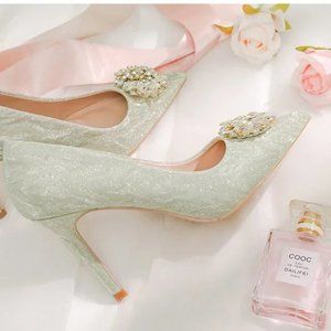 Women's Diamond Pointed Toe Satin High Heels Shoes
