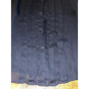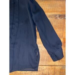 This blouse is so soft and gorgeous! It is a long sleeve button down silky feel blouse. There are shoulder pads in the blouse, as well! There is a small spot on the front of the blouse as you can see in photos, but it is hardly noticeable in person. Measurements are in the photos! Womens size 12.