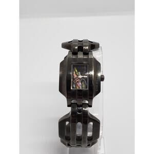Women's Diesel watch. Multi color face with silver hands an no number indicators. Stainless steel back, water resistant 330FT. Black metal band, 7 inch. Working watch