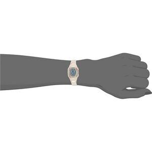Matte blush pink resin case with rose gold-tone top ring; LCD display with time, seconds, day and date; matte blush pink resin strap with buckle closure