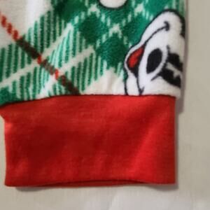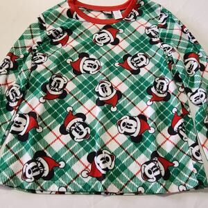 Top only. Mickey Mouse as Santa. Very soft and cozy. Neckline is piped in red. The wrist is cuffed in red. The shirt is green, red, white, and black. In very good pre-owned condition.