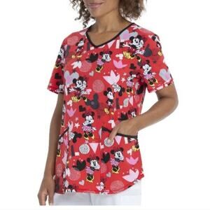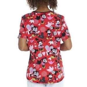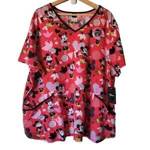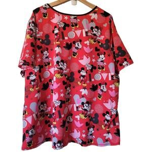 Women's Disney Mickey Mouse & Mini Mouse Love Letter Floral Print Scrub Top 3XL