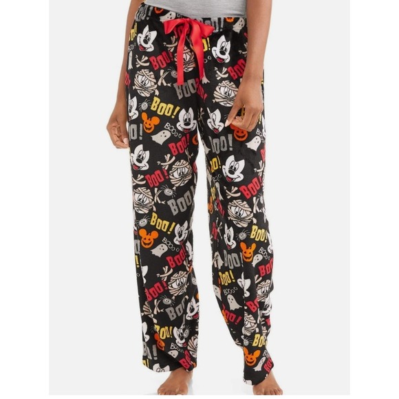 Womens Disney Mickey Mouse Soft Plush Fleece Pajama Pants Halloween Ghost XL
