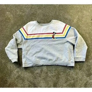 Women’s Disney Mickey Mouse Sweatshirt Gray & White W/Multi Colored Stripes 2XL