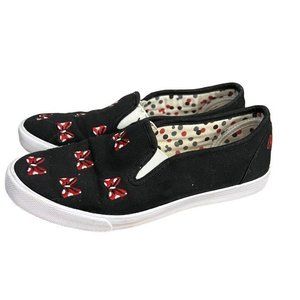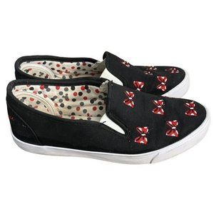 Women's Disney Minnie Mouse Slip On Sneaker Black with Bows Size 6