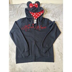 Women’s Disney Parks Minnie mouse Full Zip hoodie black red white Drawstring XL. Condition is Pre-owned - Excellent. Shipped with USPS First Class.