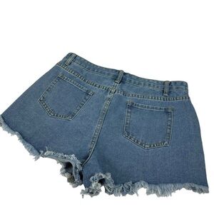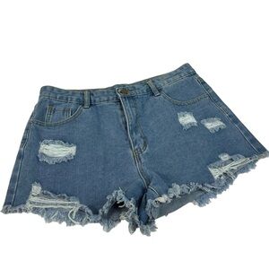 Women’s Distressed 5 Pocket Denim Raw Hem Shorts Size Large Waist 32”