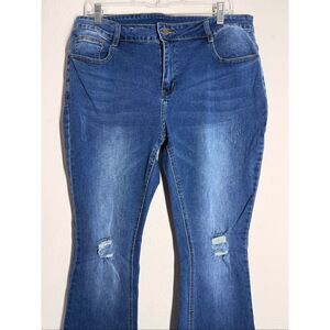 Women's Distressed Dark Wash Flare Leg Jeans Size L See Description