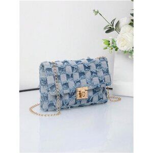 Women's Distressed Denim Crossbody Bag Twist Lock Blue2