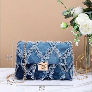 Women's Distressed Denim Crossbody Bag Twist Lock Quilted Handbag Mini Jean Purs