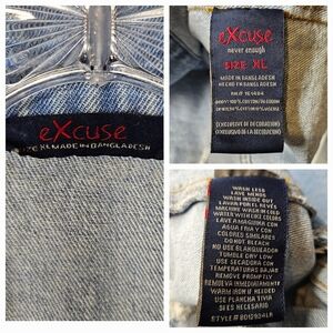 Womens Distressed Denim Jacket XL 90s Cropped Y2K Sweatshirt Sleeves Frayed Hem