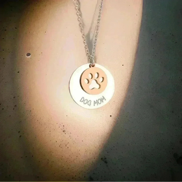 Women's Dog Mom Necklace. Crafted with high-quality stainless steel, this necklace features a beautiful Dog Paw Print Pendant, making it the perfect accessory for any dog lover.