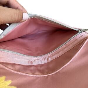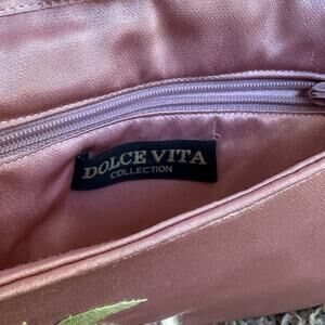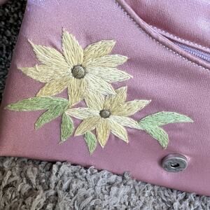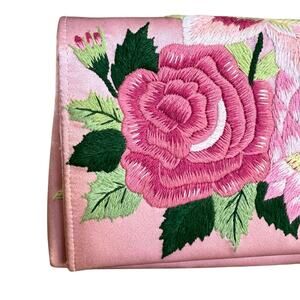 Women's Dolce Vita Pink Satin Embroidered Floral Flap Clutch Wedding Cocktail