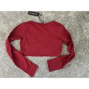 Women's Dolls Kill Current Mood Twist Front Cropped Long Sleeve Red Black Size M
