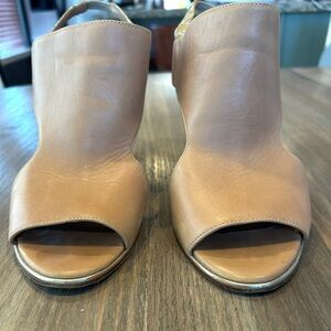 Step out in style with these elegant tan open-toe slingback heels. Perfect for any occasion, these shoes offer both comfort and sophistication. So high quality, chic and versatile!