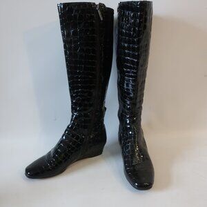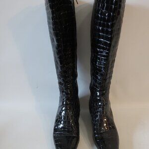 Womens Donald Pliner "Patrice" Black Croc Embossed Patent Leather Microfiber Knee Boots 7