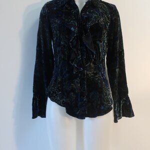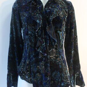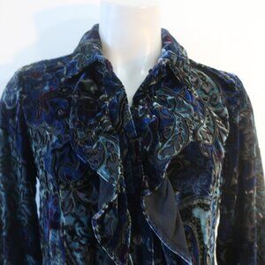 Womens Donna Degnan Black, Blue, Purple Velour Print Button Down Blouse 4