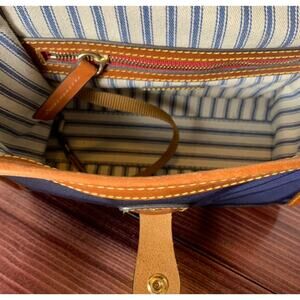 Gorgeous and versatile! Womens Dooney & Bourke Wayfarer Flap Nylon Crossbody, brown leather trim strap, lightweight, lined interior, sidewall pockets, key clip and front snap closure, adjustable crossbody strap, EUC!