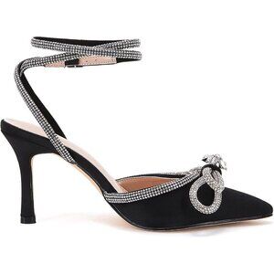 ⭐Women's Double Bow Pointed Toe Ankle Strap Crystal Pumps Stilettos Backless