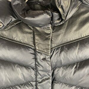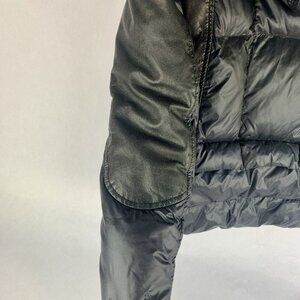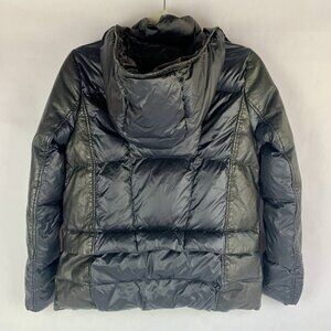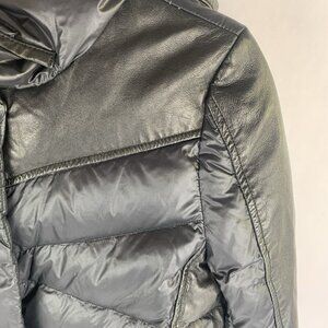 Womens Down Puffer Jacket Size Small Nylon Leather Hooded Black Chic Winter