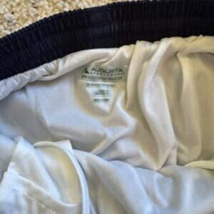 Augusta Sportswear offers a women's blue sweat in size small, designed for activewear occasions such as badminton and running. Made from moisture management polyester, it features an elastic waistband and closure, suitable for summer. The garment is machine washable and includes an embroidered logo accent. This item is pre-owned- very good condition