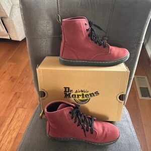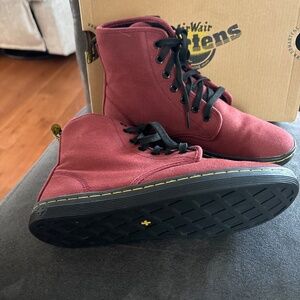 Women’s Dr Martens Shoreditch Cherry Red Rouge Canvas Boots Sz 7