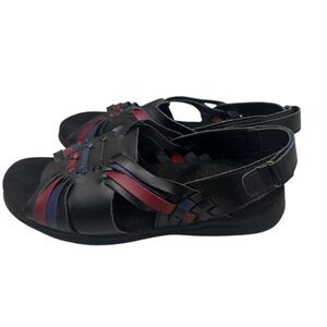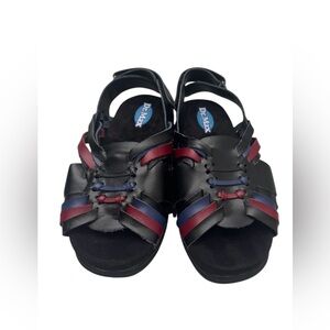 Women’s Dr. Max woven, sling back, slip-on leather sandals. Colors are black, maroon and navy blue. In good, clean condition, inside and out. Smoke free home. Women’s size 8 Wide