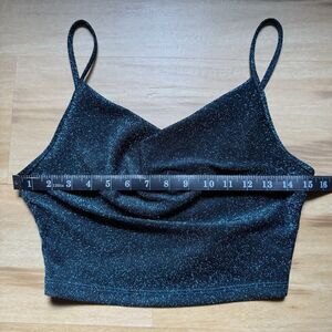 Women's Draped Cowl Neck Cropped Tank Top Blue Glitter Metallic Micro Cami M