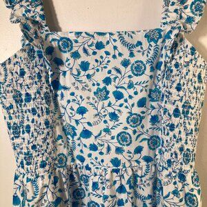 Womens Draper James Floral Smocked Sundress White Teal L Cotton