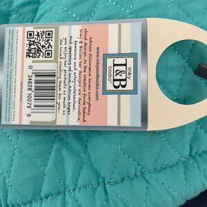 By Inky and Bozko.  New, plush quilted cotton in a fun-loving Beachy Keen print. Top loading with drawstring closure and an additional magnetic snap closure. Interior zip pocket and two slip pockets.  18.5” long by 15.25” wide.  Comes with dust cover. Tags still attached.