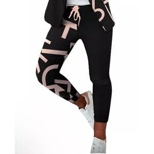 Womens Drawstring Pants Size large Letter Graphic Print Stretch Waist Casual L