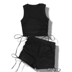 Casual solid outfits for women, drawstring side, ruched, crewneck, sleeveless, slim fit, brings out your excellent curve and charming